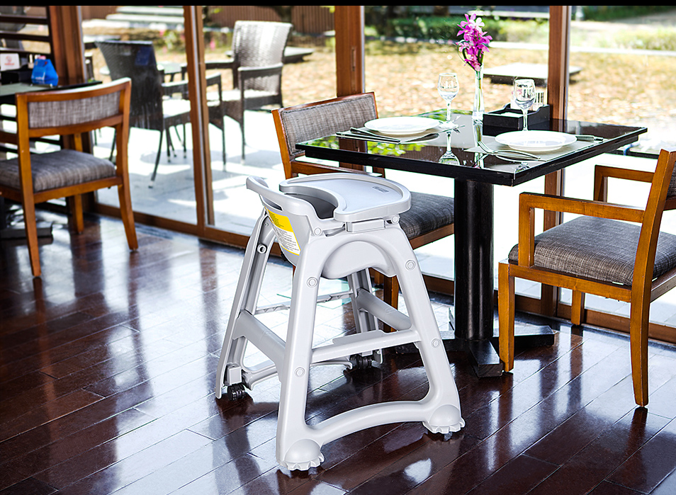 每一張餐椅的設(shè)計都充分考慮了椅子的承重強度和穩(wěn)定性。 配套的餐盤使用方便,一只手便可取下,并有兩種顏色可供選擇。 餐椅可疊放,減少占用的存放空間。
